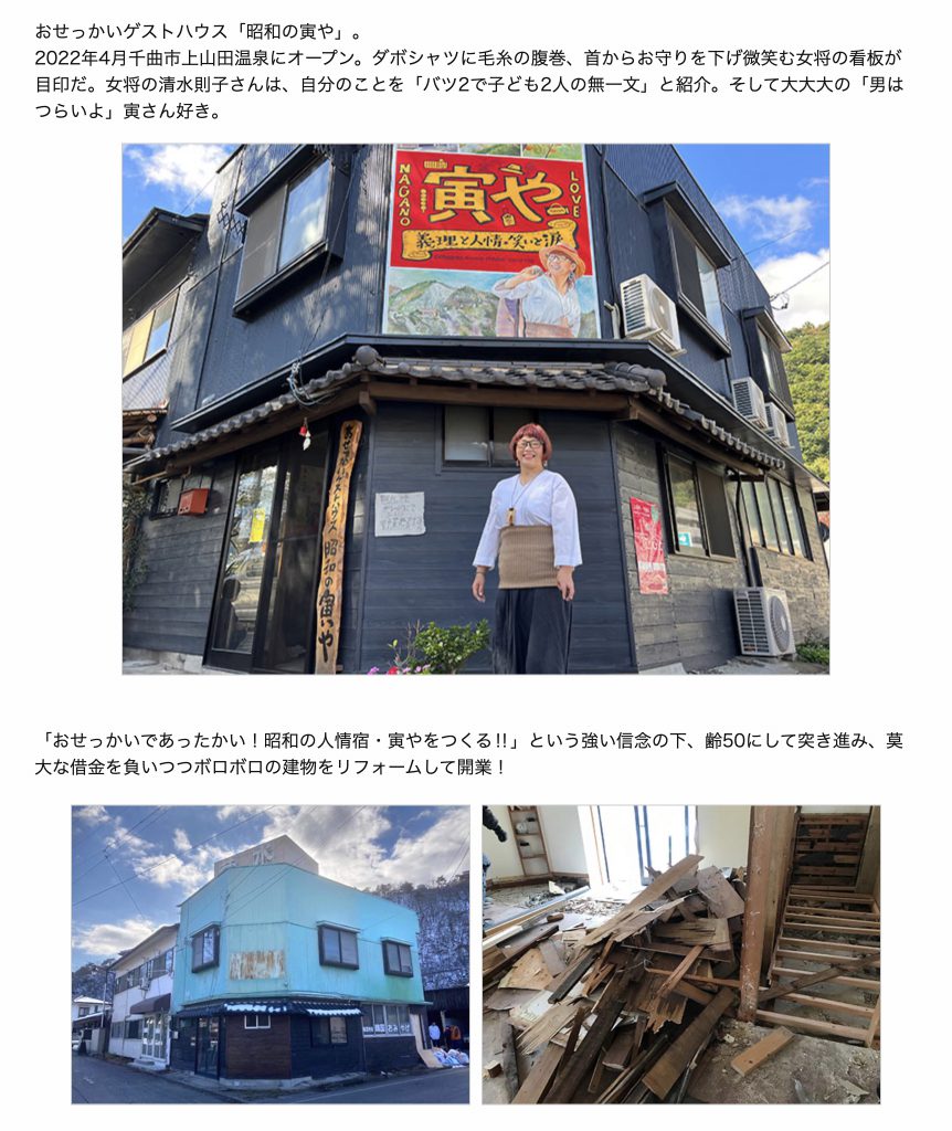 おせっかいハウス「 昭和の寅や」の女将 清水さんと、シェアハウスの住人が織りなす「泣き笑い」ドキュメンタリーが、SBC信越放送のTV番組「 SBCスペシャル 」にて放送されました。