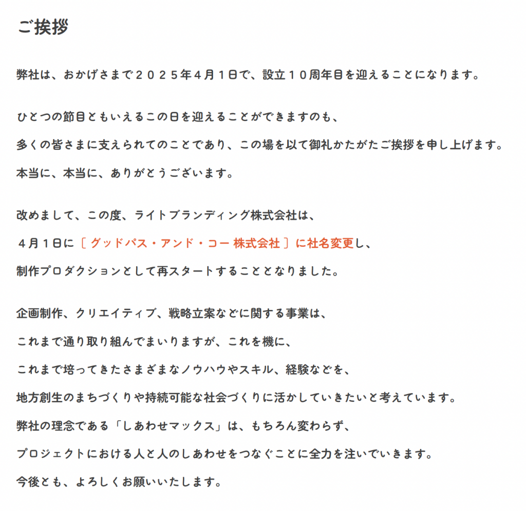 2025年4月1日に「グッドパス・アンド・コー株式会社」に社名変更し、