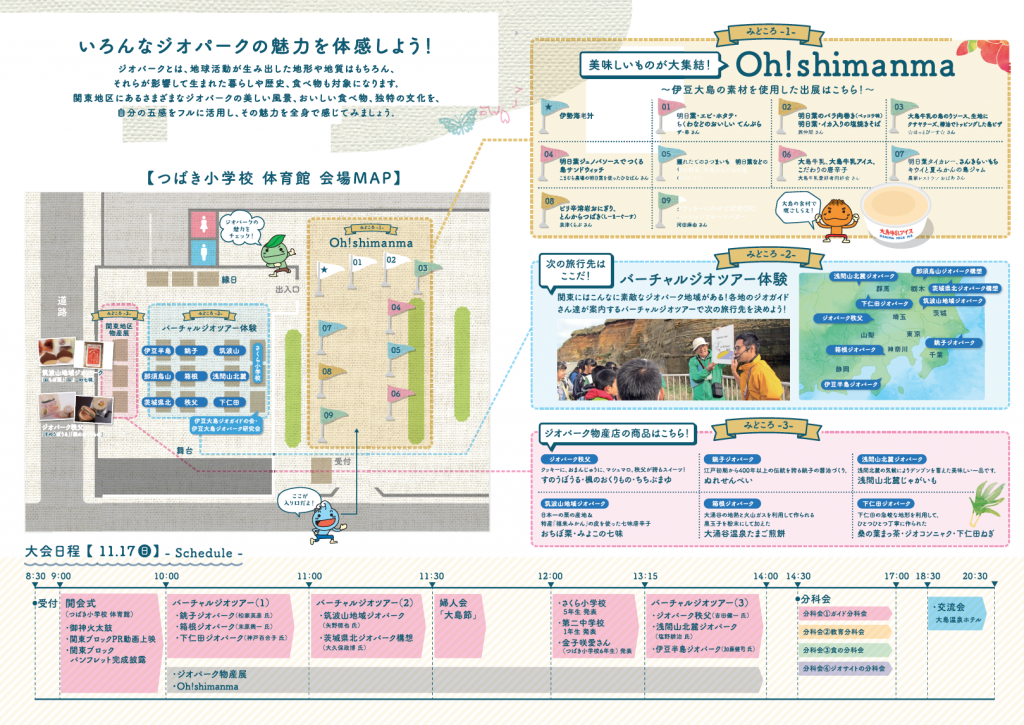 関東地域にある10のジオパーク(浅間山北麓ジオパーク・下仁田ジオパーク・ジオパーク秩父・箱根ジオパーク・伊豆半島ジオパーク・那須烏山ジオパーク構想・茨城県北ジオパーク構想・筑波山地域ジオパーク・銚子ジオパーク・伊豆大島ジオパーク)の関係者が集まり、あらゆる情報交換を行う「日本ジオパークネットワーク関東大会 in 伊豆大島」。