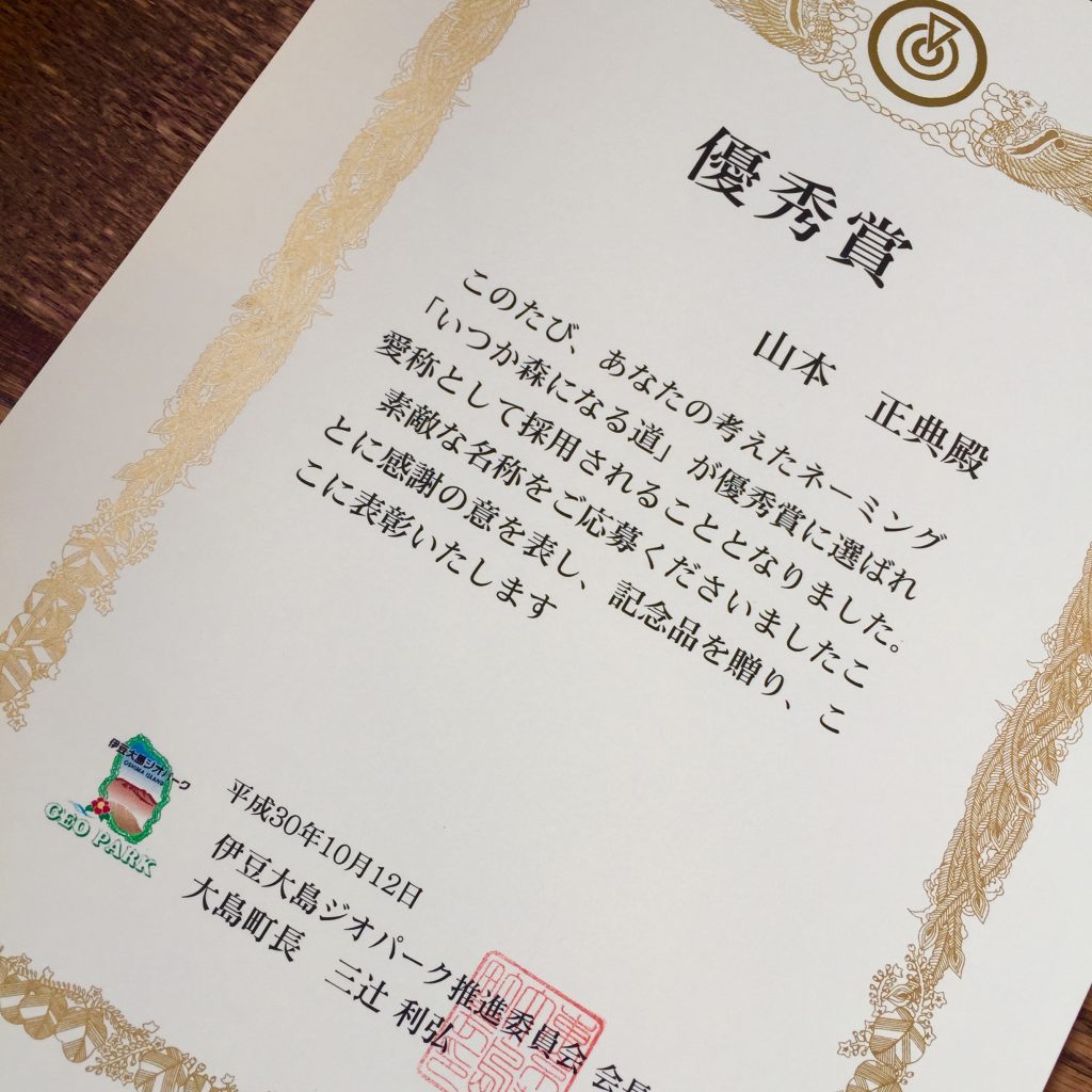 「いつか森になる道」が優秀賞に。 現在、伊豆大島町役場の方々...